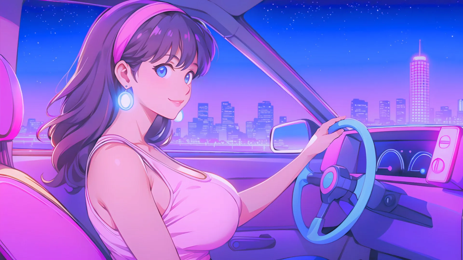 فتاة أنمي، ضوء نيون، فن ذكاء اصطناعي، بساطة على الحاسوب، بساطة 4K