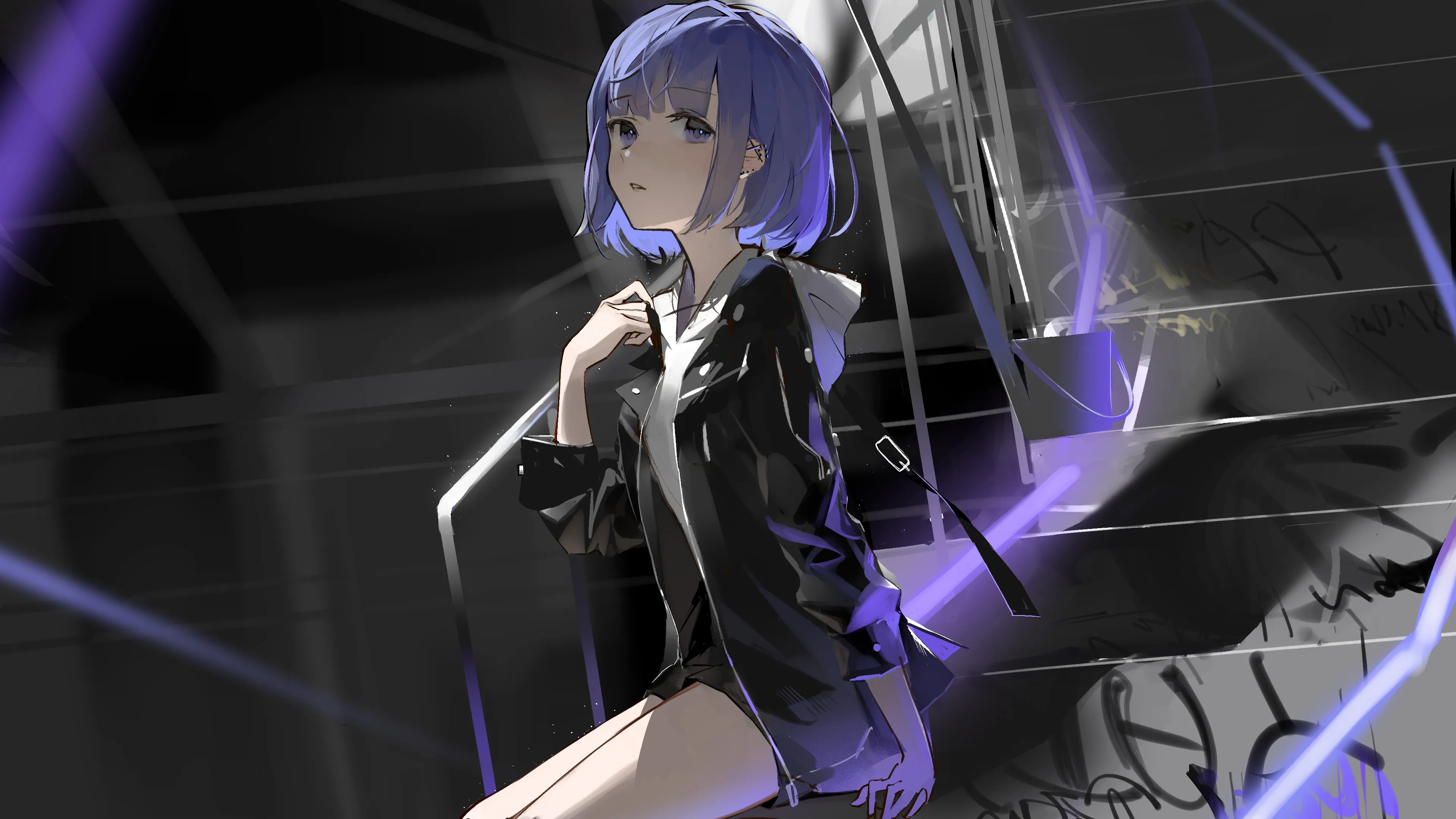 قصير, فخذين, يشاهد الجمهور, أنمي, فتاة أنمي, السلم, 4K Wallpapers
