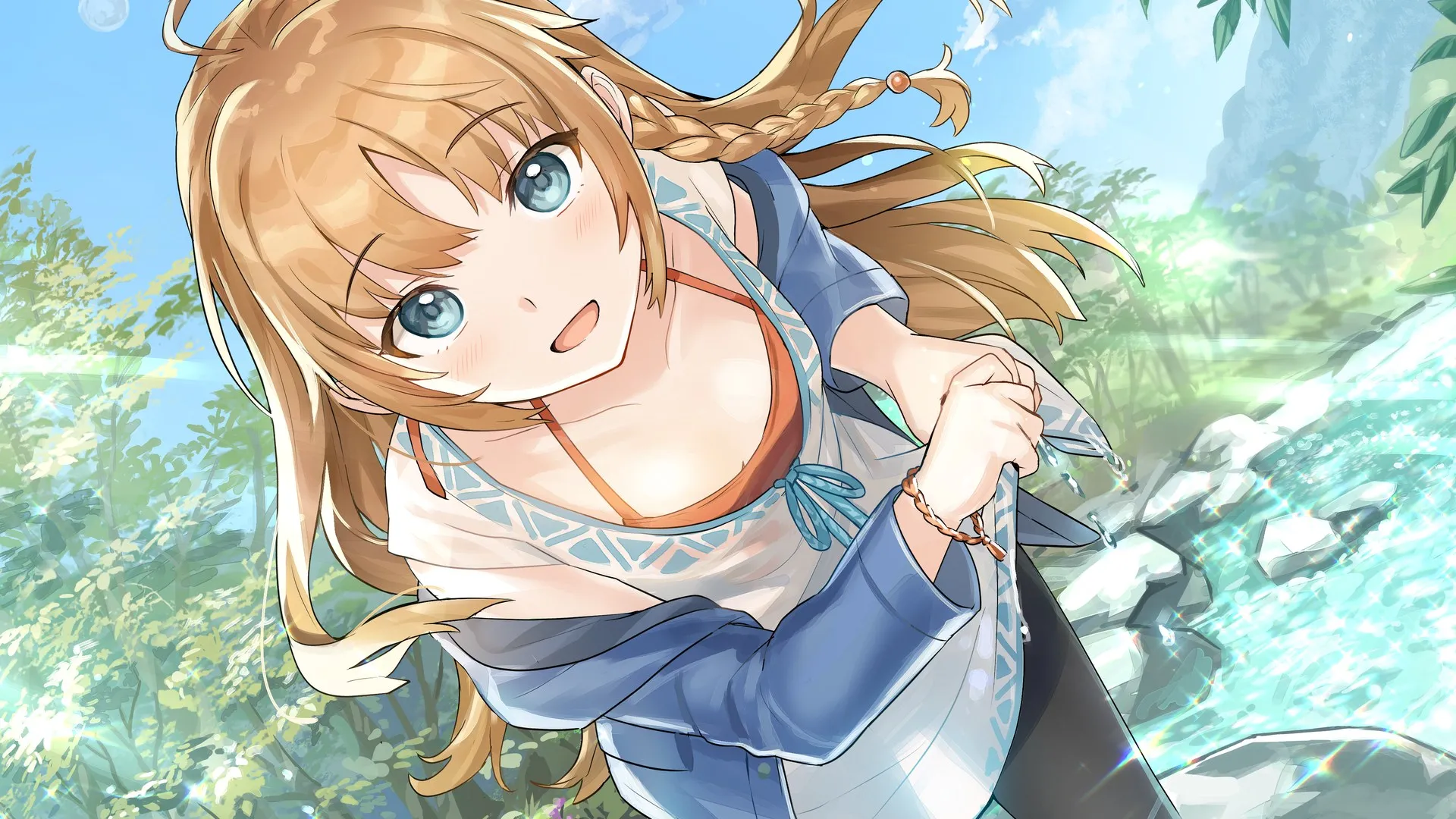 شعر ذهبي عيون زرقاء قطع خطية رسوم متحركة فتاة رسوم متحركة حاسوب لصق الجدران 4K لصق الجدران