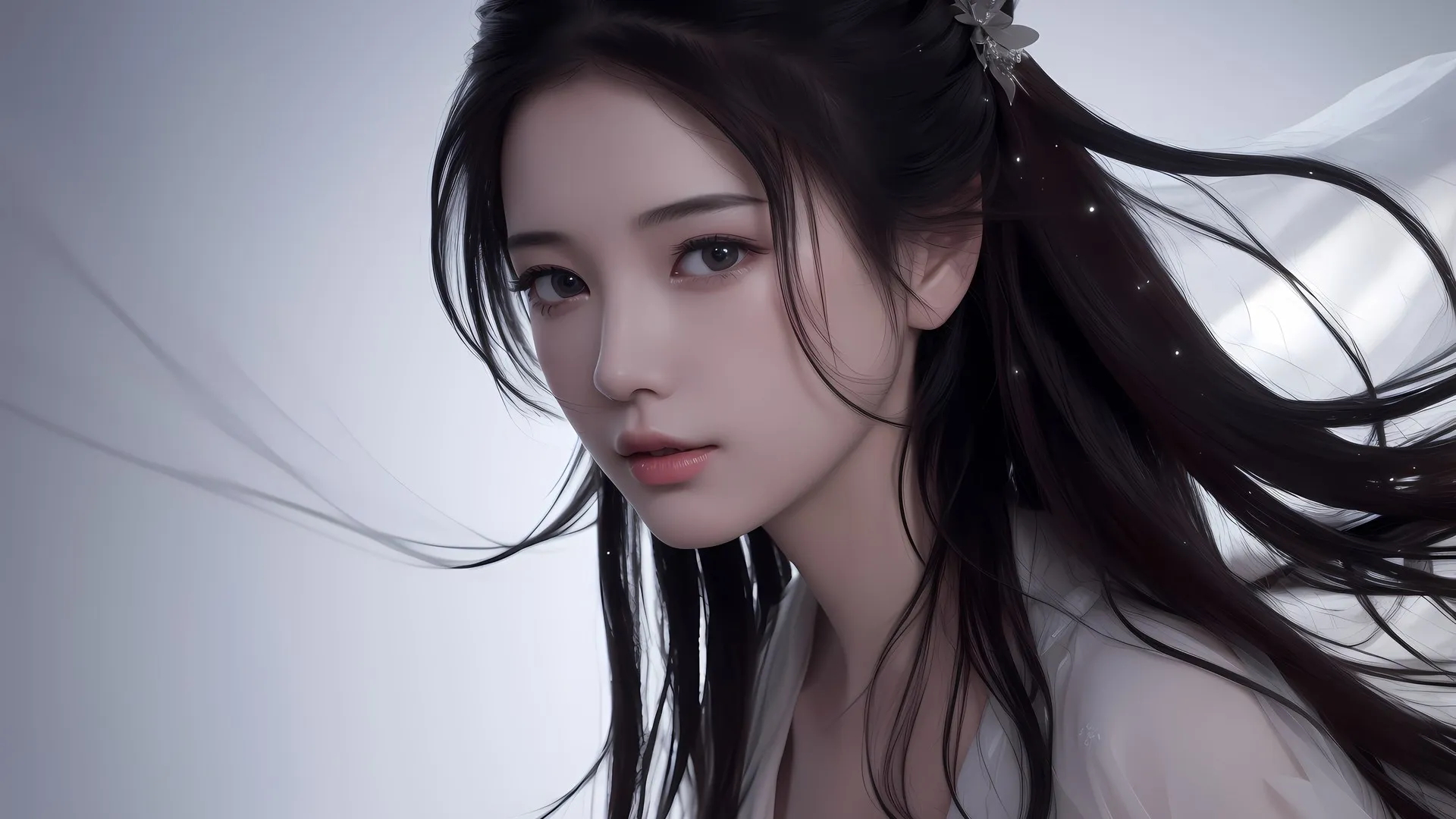 Asian Face Long Hair Art Computer Wallpaper 4K Wallpaper