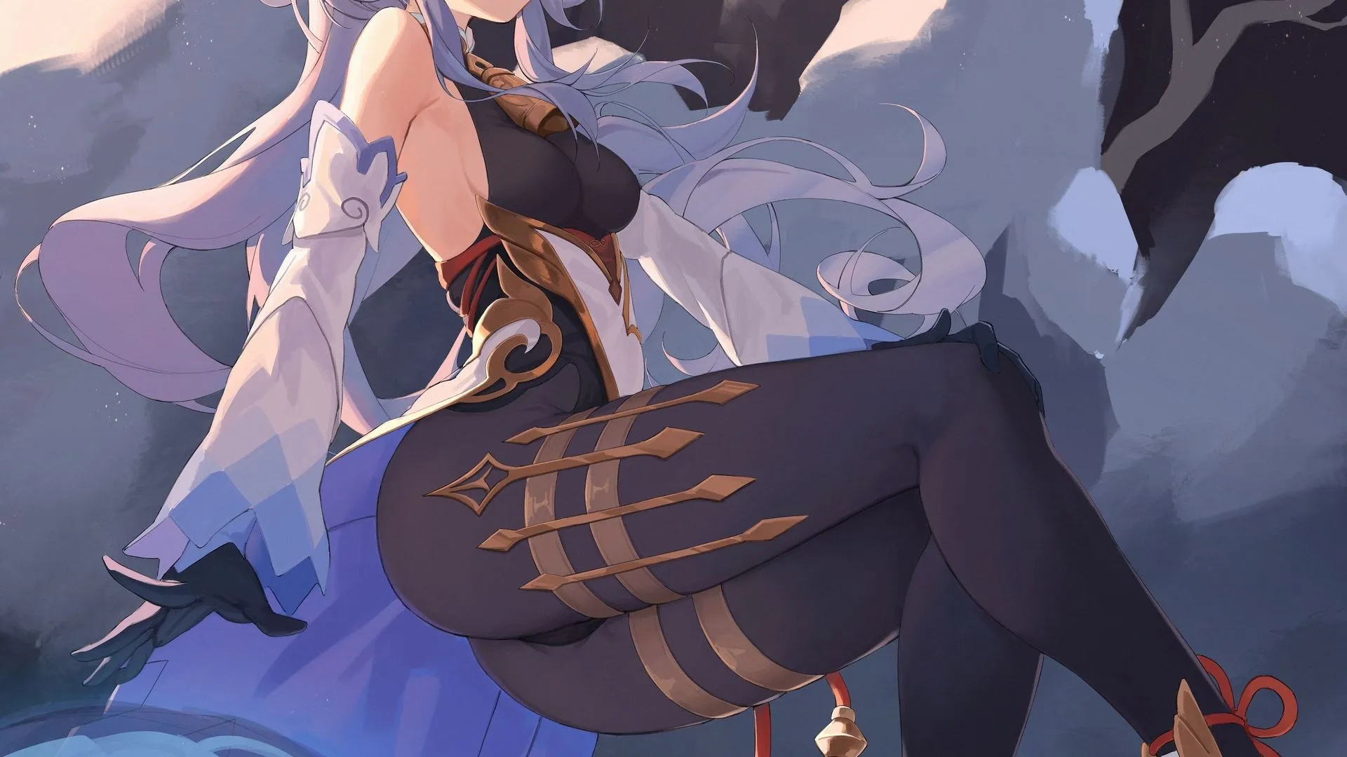 Genshin Impact, Tight Clothing, Floating, Brown Eyes, Gan Language, Genshin Impact, Tight Clothing, Trumpet, Anime Girl, Mobile Wallpaper, 4K Wallpaper