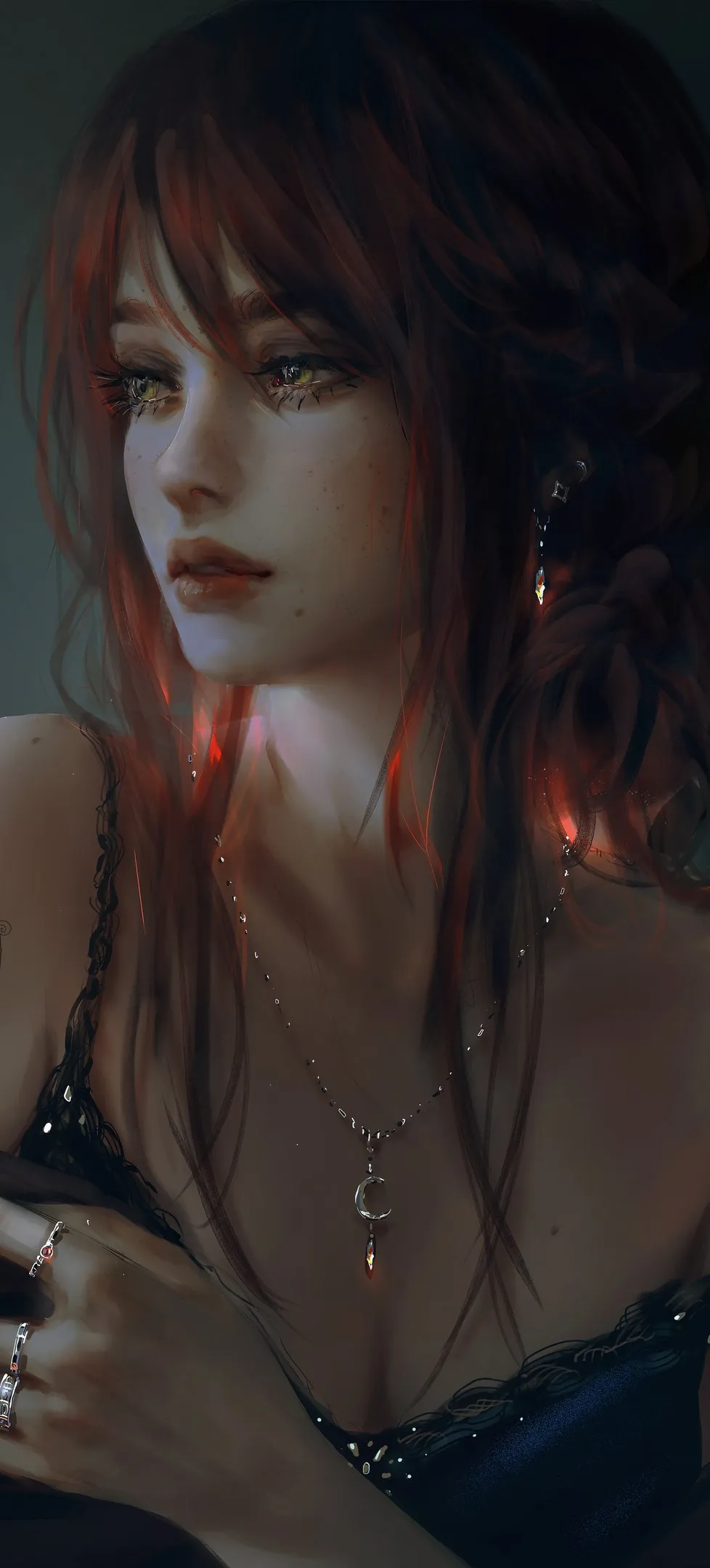 woman, long hair, dark hair, side view, looking elsewhere, portrait, mobile wallpaper, 4K wallpaper